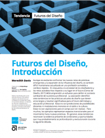 Es un estudio realizado por la American Institute of Graphic Arts (AIGA) donde se analizan las tendencias del diseño gráfico para la siguiente década, identificando cuáles transformaciones están teniendo lugar hoy en la profesión así como las necesidades que enfrentará la formación de los estudiantes para el futuro inmediato. Aunque el estudio contempla tales escenarios dentro de los Estados Unidos, pueden considerarse como tendencias para la profesión del diseño también de forma general. Presentamos aquí una versión en español del texto, autorizada por el propio Instituto para su mayor difusión.